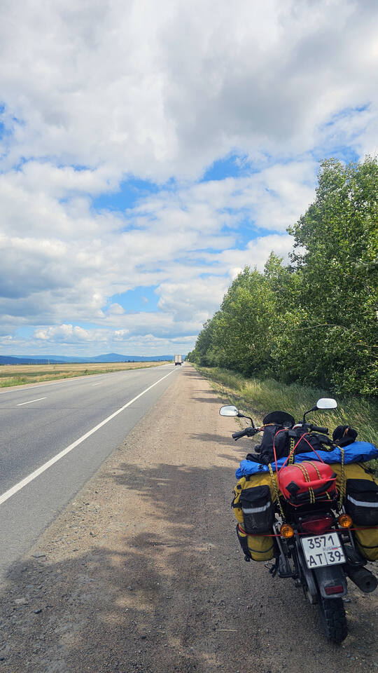 Например, фуру удобнее всего обгонять, когда есть затяжной подъем, часто на таких подъемах вверх делают две полосы попутного направления, и нужно так выбрать момент, чтобы фура потеряла тягу после первой половины подъема, но была еще далеко от его окончания, когда начинается сужение дороги до одной полосы. В этот момент так же необходимо следить за тем, чтобы кто-нибудь тебя не настиг и не стал обгонять. Пропуск одного такого автомобиля влечет за собой потерю скорости, которую можно и не набрать до конца подъема. Второй вариант – разогнавшись непосредственно за фурой, используя пониженное аэродинамическое сопротивление в области разрежения, набрать максимальную скорость и, убедившись в безопасности маневра, выйти из разреженной области, пытаясь не потерять интенсивность обгона, обгонять, выжимая из маленького мотоцикла все силы. Еще хорошо, когда ветер дует в спину. Чаще, конечно, проще отпустить фуру вперед, сбавив скорость на 5-10 км/ч и ехать, наслаждаясь окружающей природой.3 день. Селенгинск-Сухэ-Батор (370 км). 25 июля 2025.