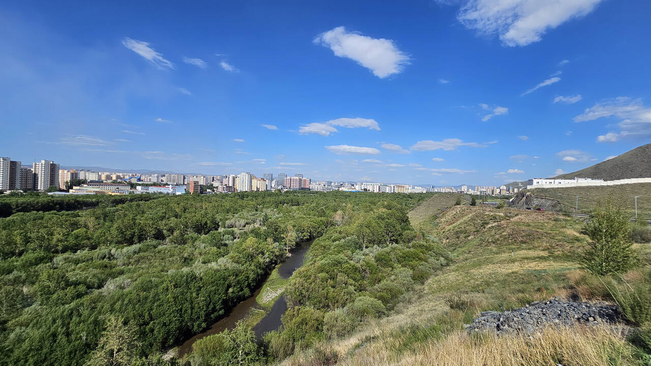 Столицу проезжаем по южной объездной, которая отделена от города Эпической рекой. В пойме и долине реки растет множество деревьев, кустарника, это, как видится, излюбленное место отдыха горожан. Практически на протяжение всей объездной на реке мелкими и большими группами устраиваются пикники, купания. На дороге встречаются походные кафешки, в которых продются хот доги, напитки и традиционный монгольский фастфуд. Погода прекрасная, катим, наслаждаясь видами на реку и большой столичный город.